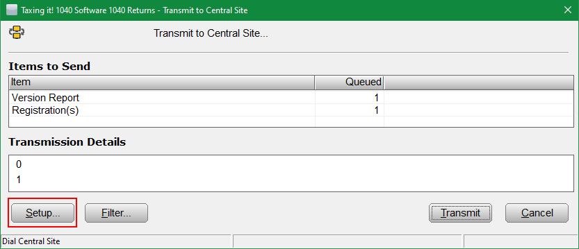 - From the WIP screen, click on Transmit to Central Site or Transmit to Main Site.