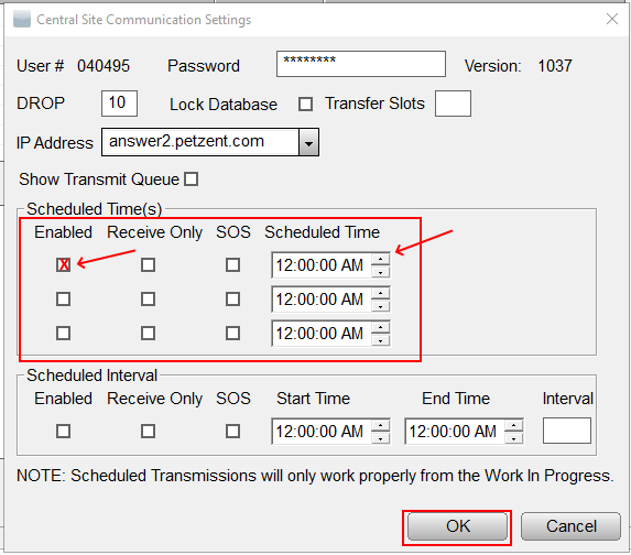- Viewing the "Scheduled Times" section, select the desired transmission times.