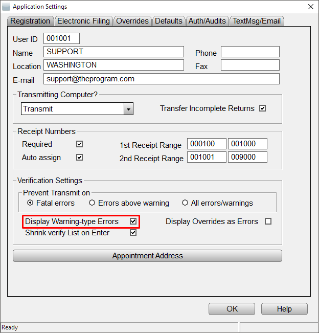 - Under Verification Settings, check the box labeled Display Warning-type Errors.