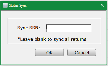 - Choose to enter the SSN to sync that return or leave blank to sync all returns in database.