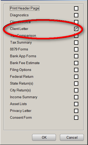 3. Select the Client Letter check box. Verify no other items are selected.