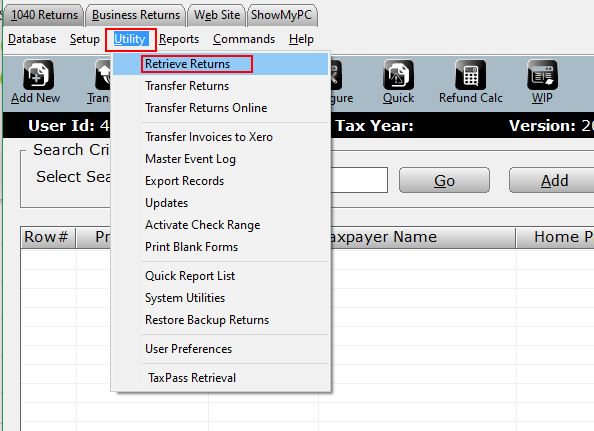 - Select Retrieve Returns from the dropdown menu.