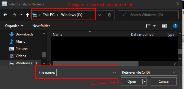- Navigate to the location of the return file (.xf# or .xb#) and click Open.