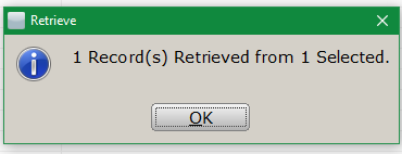 - The following message will display to indicate the record(s) have been retrieved.Â