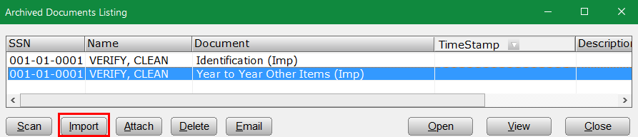 - The imported file can be Viewed from the Archive Documents Listing window.