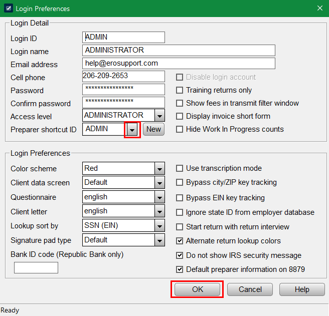- In the "Preparer Shortcut ID" field, use the dropdown to link correct preparer.