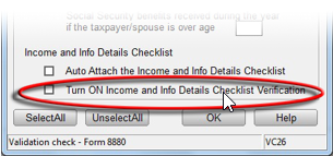 - Place a check in the box next to Turn ON Income and Info Details Checklist Verification.