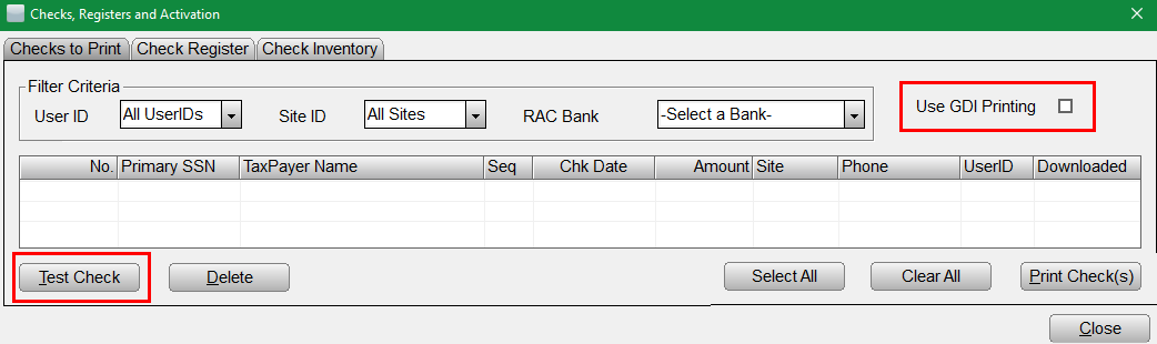 Checks Not Printing