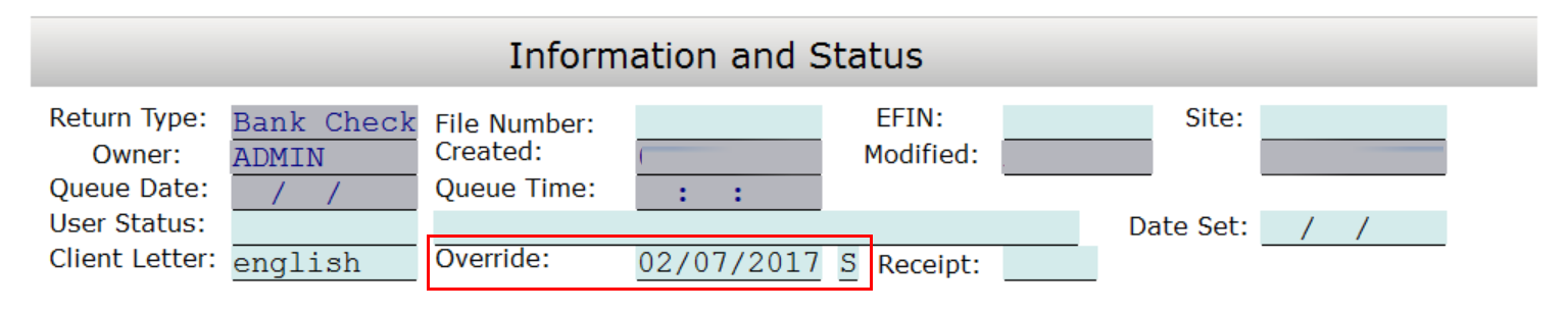 Using this feature will overwrite the current status of the return with whatever you select, and the menu defaults to S Suspended from Further Processing.