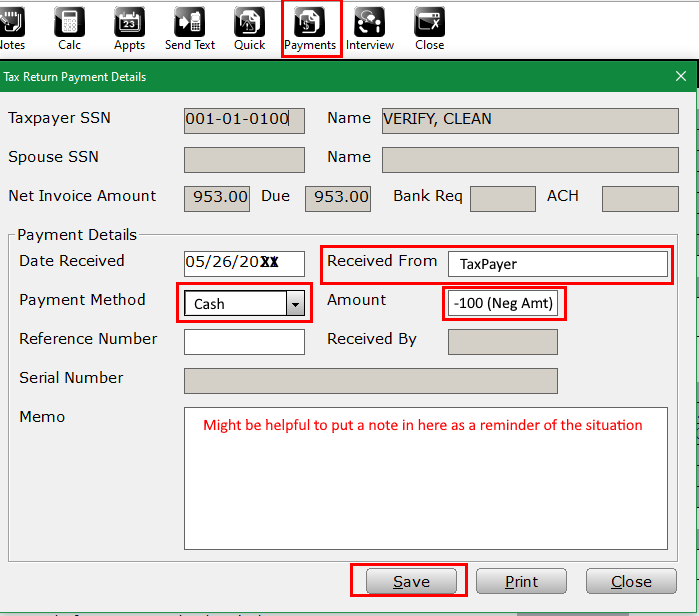 - In the Amount box make sure there is a "-" in front of the dollar amount