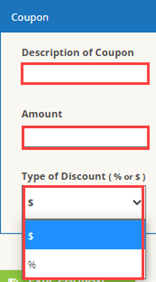 - Scroll down to the Coupon section and enter coupon information. Click Save Coupon.