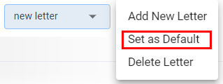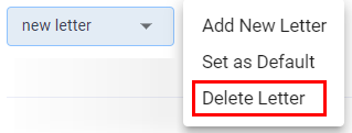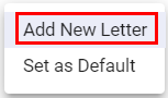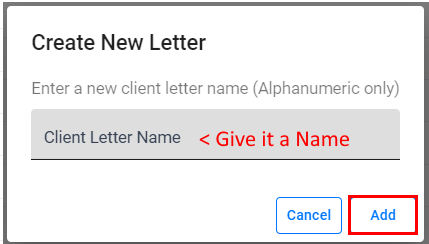 NOTE: You can not edit/make changes/or delete the ENGLISH (default) version of the client letter. - Select Add New Letter