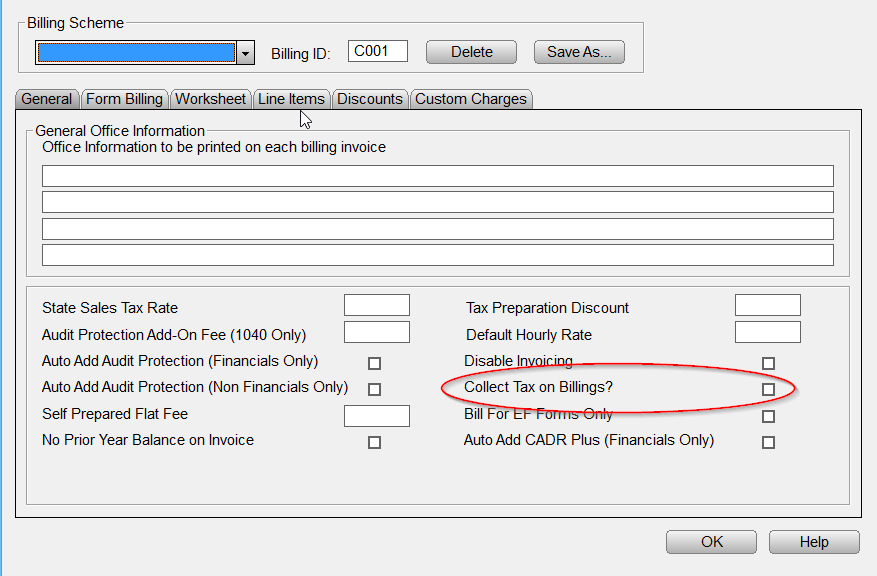 3. Click the Collect Tax on Billings check box as shown in the image below.